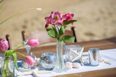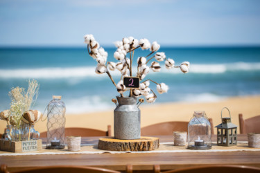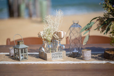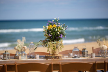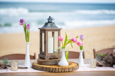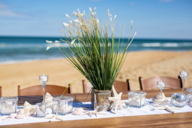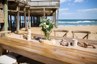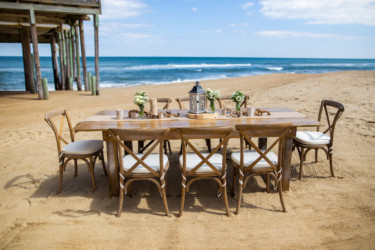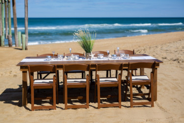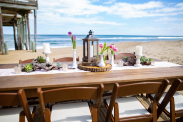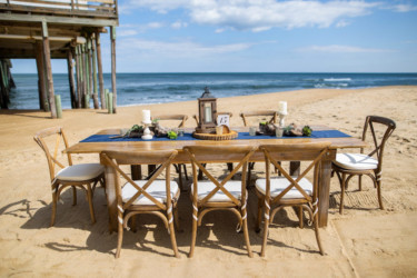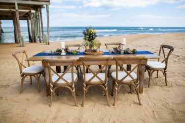 Our rustic wooden farm tables are the perfect starting point for your Outer Banks reception. I Do OBX will deliver and set up your tables and matching chairs for your convenience!